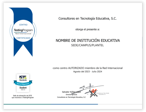La certificación TestingProgram es la única en Latinoamérica que cuenta con el reconocimiento de la Sociedad Internacional para la Tecnología en la Educación (International Society for Technology in Education – ISTE) porque cumple con los más rigurosos estándares internacionales.